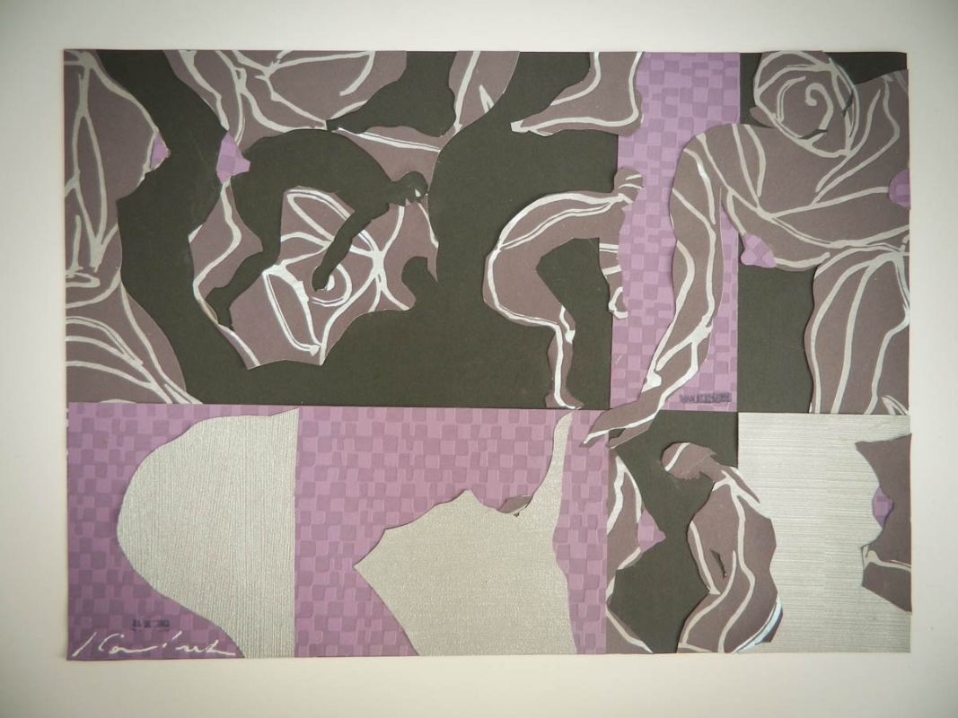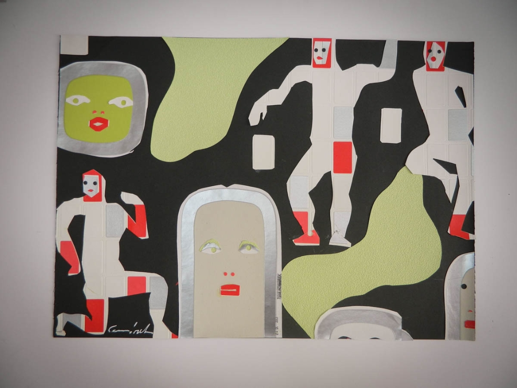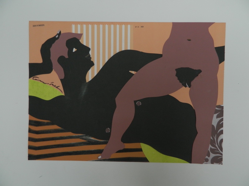 Koláž je osvědčená metoda. Efektu radikálního řezu, uzavřené, přísně ohraničené plochy, se nedá lépe docílit. Věci se sebou zdánlivě nesouvisející lze dostat do nových, překvapivých významů. Koláži se průběžně věnuji od začátku tvorby, někdy jen částečně, jako součásti kresby, malby i plastiky či keramiky, jindy zcela programově v celých sériích, kdy impulzem jsou například piknikové papírové talíře, firemní katalogy, průhledné barevné fólie.
