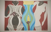 Stejné postupy používám i při zpracování polystyrenových potravinových obalů, které se mi střádají na pracovním stole. Výsledkem je trojrozměrná koláž, která má dva tematické okruhy – samozřejmě figuru a pak nejrůznější motivy květinové. Objekty je možné zezadu prosvěcovat, a tím docílit větší prostorové hloubky a zářivých barev.